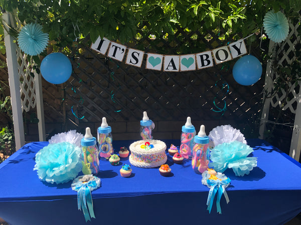 Jumbo Baby Bottle (11 in) for Baby Shower Games Baby Bottle Candy, Baby Piggy Bank, Baby Shower Centerpieces, Filled with Party Favors (Blue)
